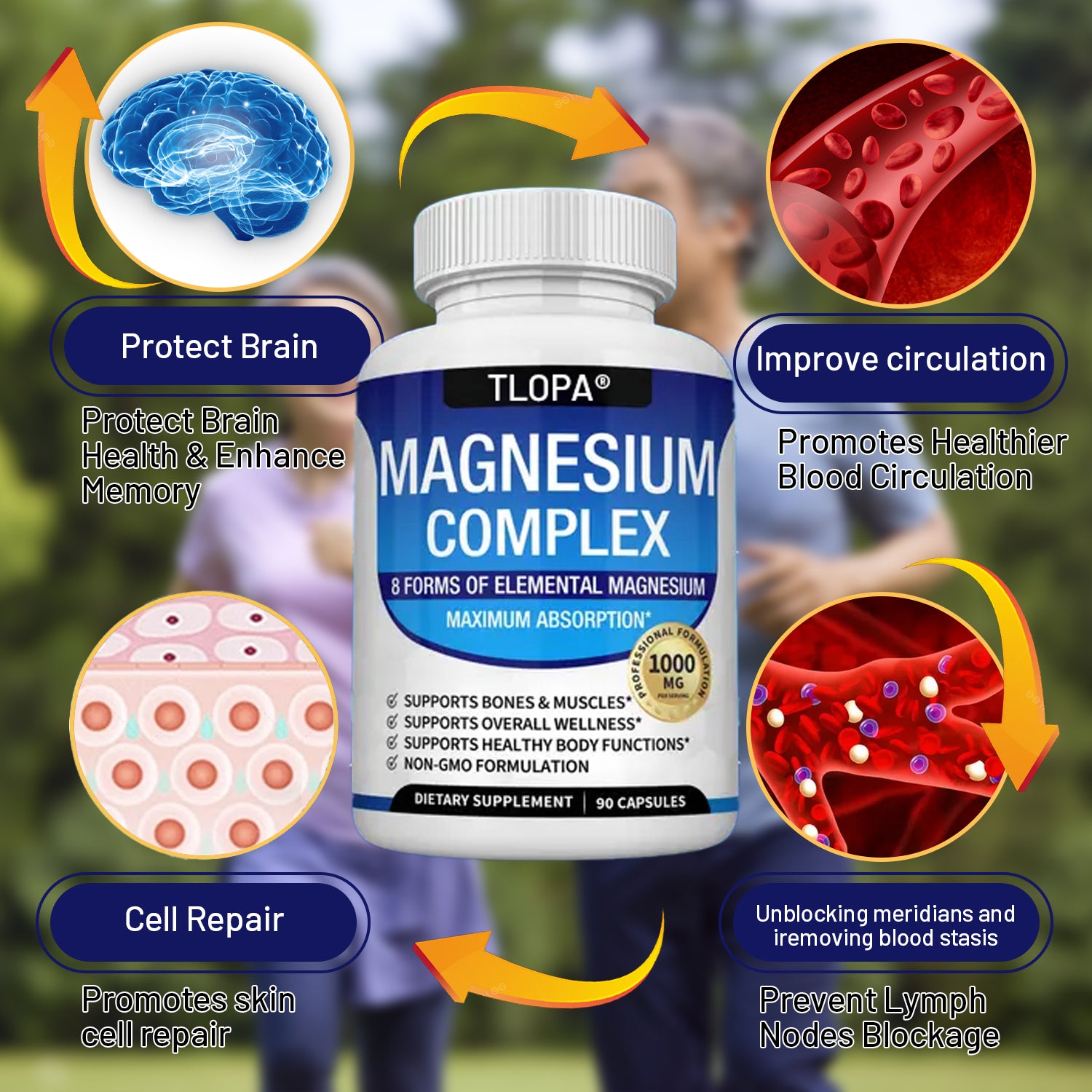 Our Magnesium Complex combines multiple highly absorbable forms of magnesium (such as Magnesium Citrate and Magnesium Glycinate) in a scientifically balanced formula to provide comprehensive health support: